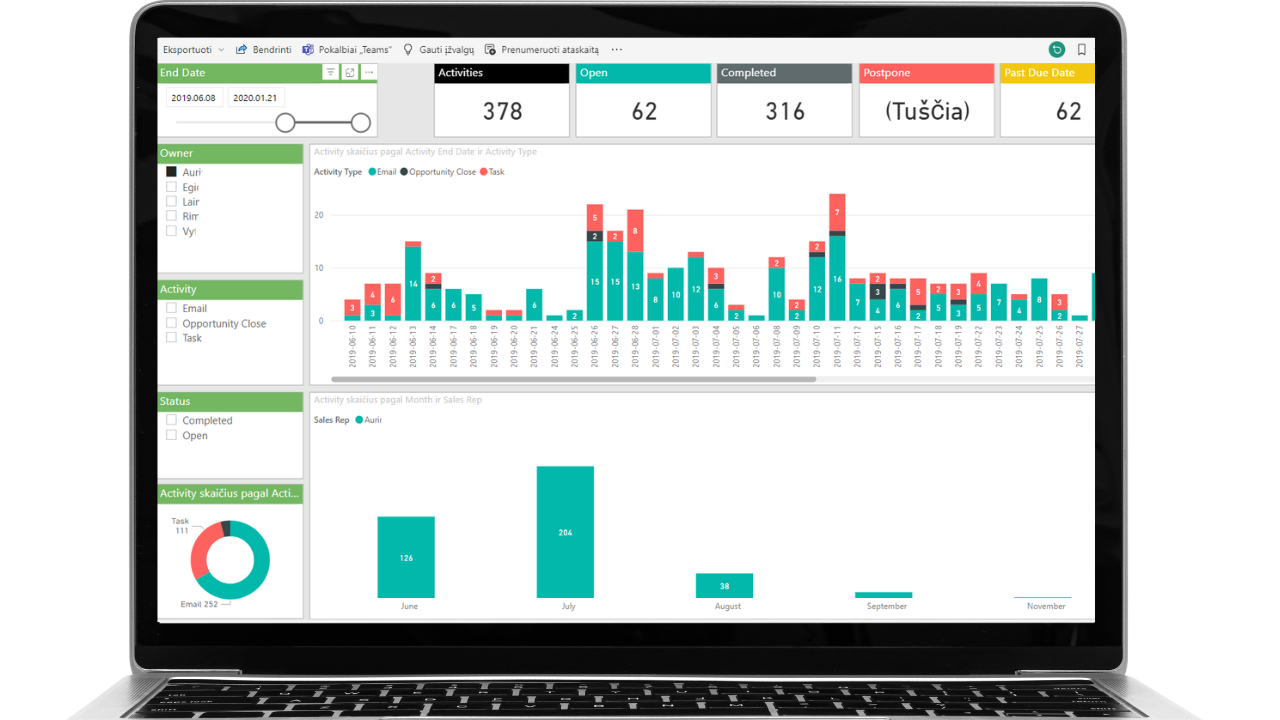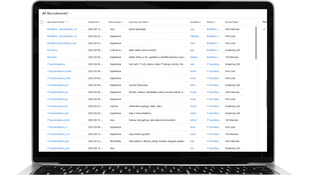 Galite naudoti jau paruoštas standartines sistemos ataskaitas arba pagal poreikį formuoti individualias, naudojant vidinius analizės įrankius ar duomenis atiduodant į Microsoft PowerBI. Stebėkite svarbiausius KPI, analizuokite, kur darbuotojai vykdydami atrankas investuoja daugiausiai laiko, kokios atviros pozicijos yra „apleistos“ ar juda nepakankamai sparčiai per procesą.