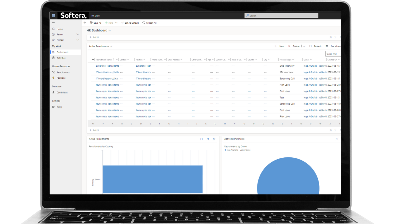Softera.ATS sprendimą galite pritaikykite individualiems įmonės ar vartotojo poreikiams be jokio programavimo: konfigūruokite sistemą „drag and drop“ principu, laisvai dėliokite sau ir komandai patogius „darbastalius“, sudarinėkite sąrašus su norimais stulpeliais iš duomenų bazės, kurkite sau aktualias ataskaitas, automatizuokite užduotis naudojantis jau paruoštais įrankiais.