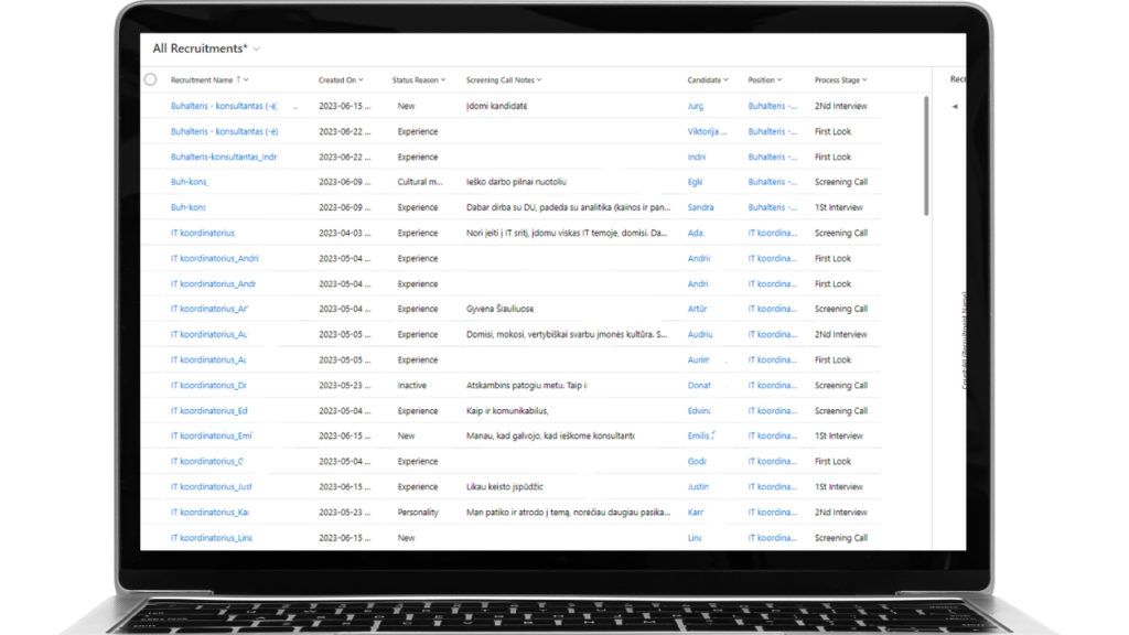 Galite naudoti jau paruoštas standartines sistemos ataskaitas arba pagal poreikį formuoti individualias, naudojant vidinius analizės įrankius ar duomenis atiduodant į Microsoft PowerBI. Galite stebėkite svarbiausius KPI, analizuoti, kur darbuotojai vykdydami atrankas skiria daugiausiai laiko, kokios atviros pozicijos yra „apleistos“ ar juda nepakankamai sparčiai per procesą.